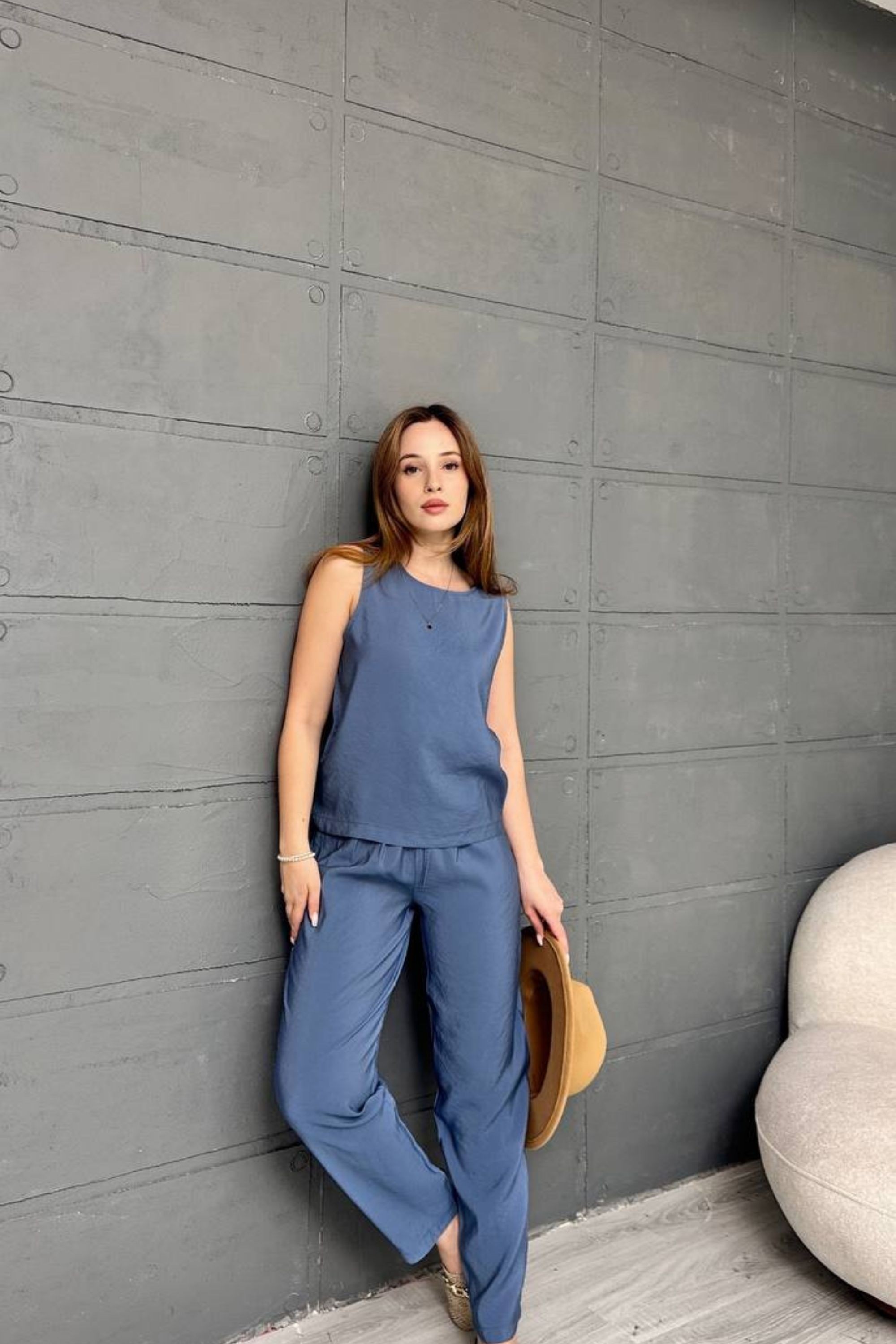 Minimalist şıklığın öncüsü bu ikili basic takım, rahatlığı ve sadeliği bir araya getirerek günlük stilinizi modern bir çizgiyle tamamlıyor. Kolsuz ve yuvarlak yaka tasarıma sahip üst parça, özgür bir hareket alanı sağlarken; bağcık detaylı pantolon, konforu işlevsellikle buluşturuyor.